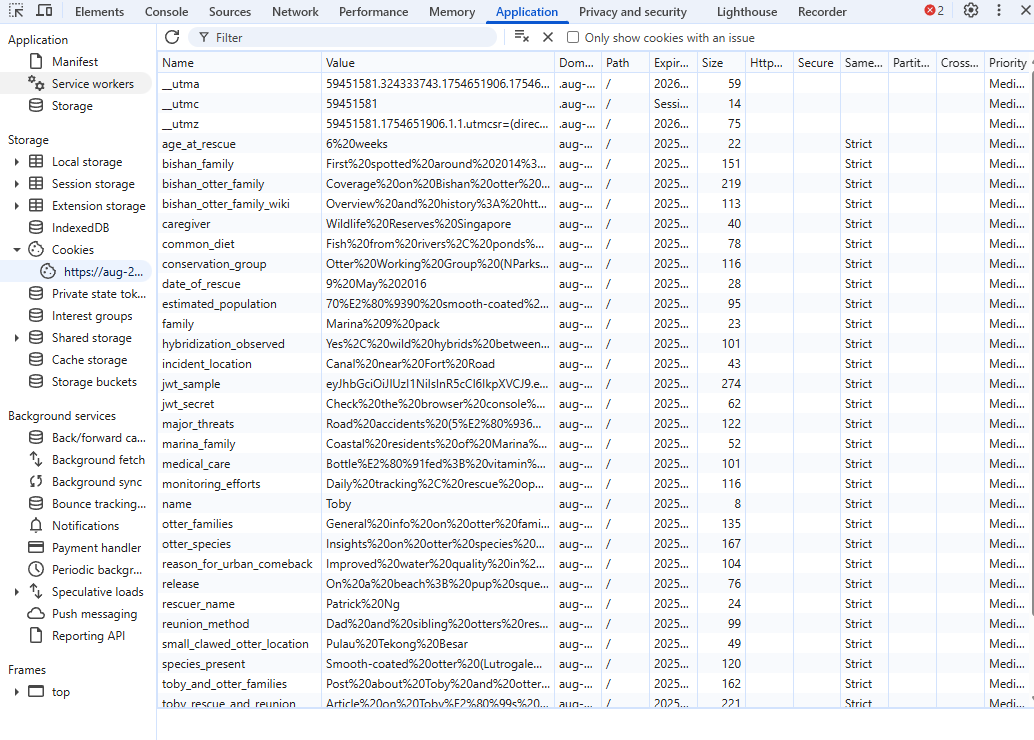 To generate a valid JWT token, we first need to know what format a normal JWT token has. The cookies has a jwt_sample parameter with 3 dots - which resembles a JWT token. Using jwt.io we are able to see exactly what payload this token has. If you recall, these fields are found within the cookies! The time in unix can just be a valid timeframe.