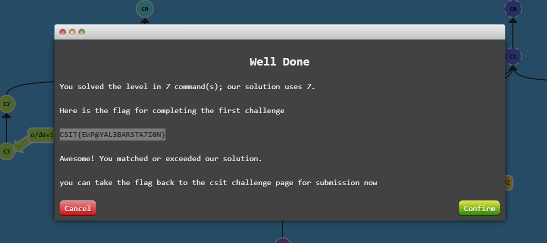 After a successful series of commands, you'll arrive at this pop-up with the flag.